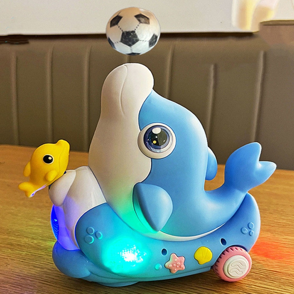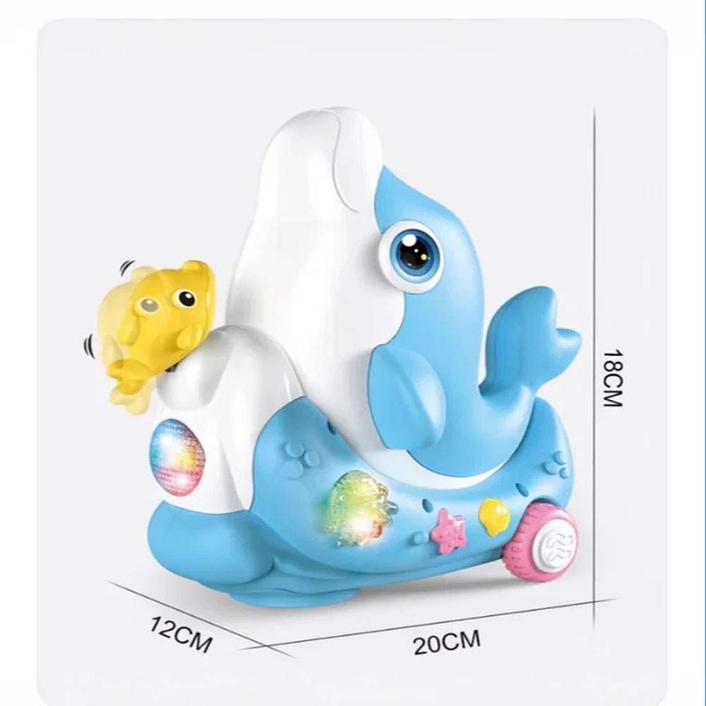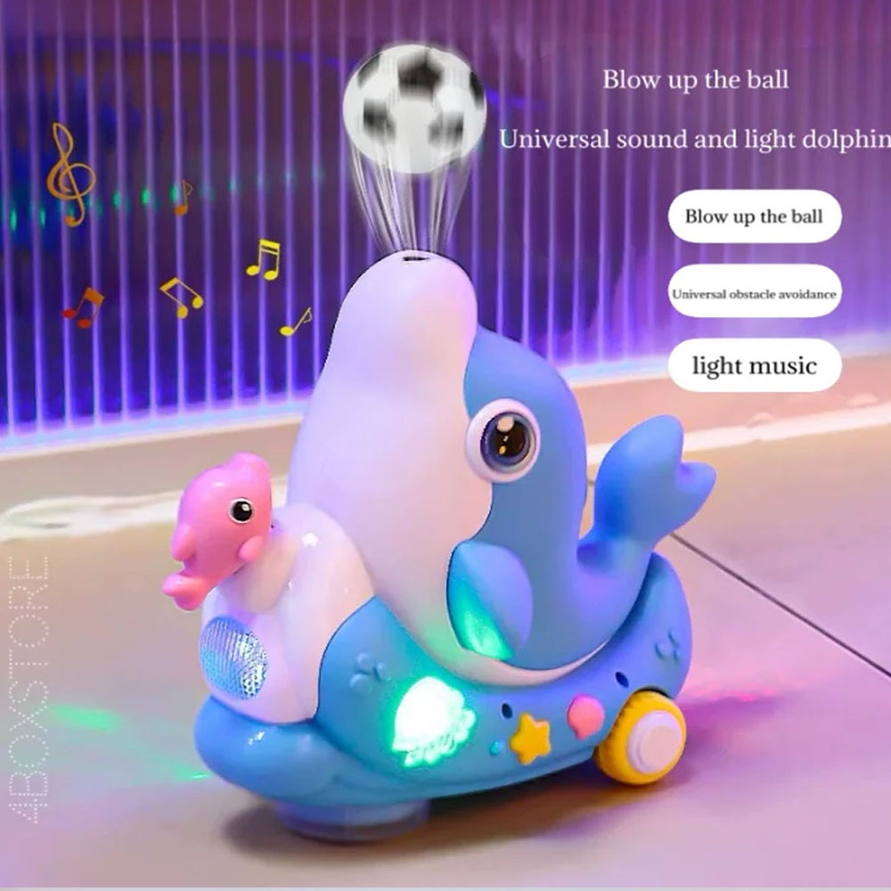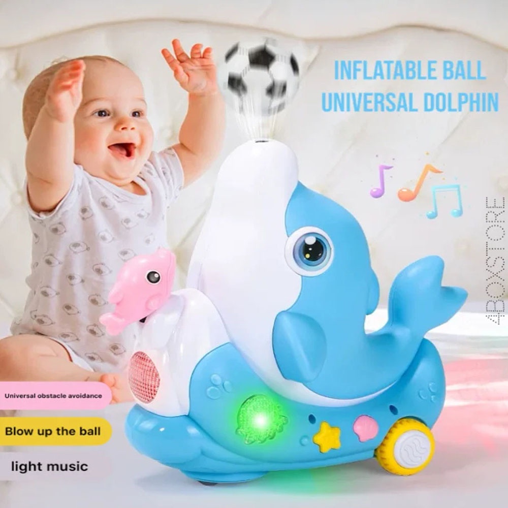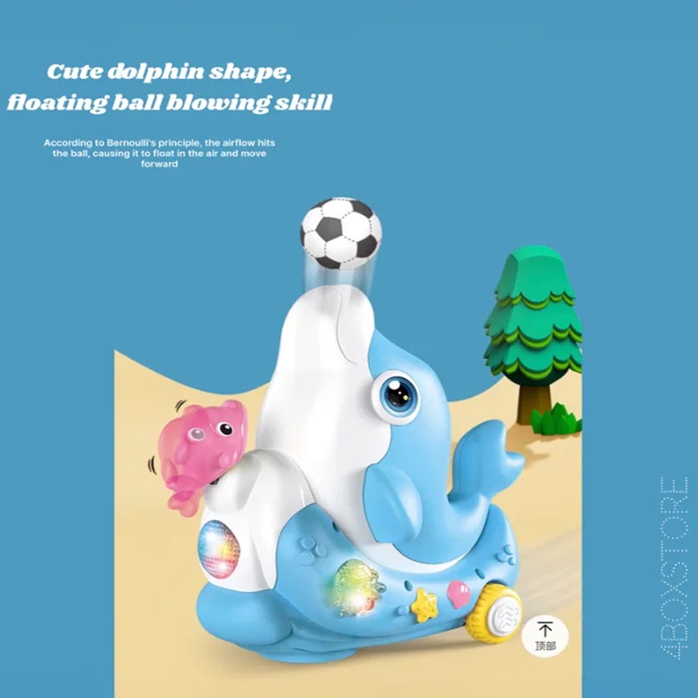 لعبة الدلفين الطائر للأطفال بتصميم عائم وتفاعلي، تتحرك تلقائيًا مع موسيقى وإضاءة جذابة لتنمية مهارات الطفل الحركية والانتباه.